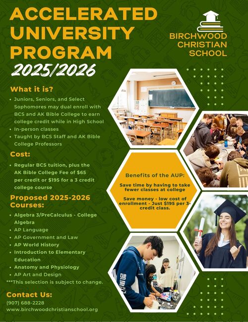 11th-12th grade BCS and Homeschool students can apply for the Accelerated University Program.